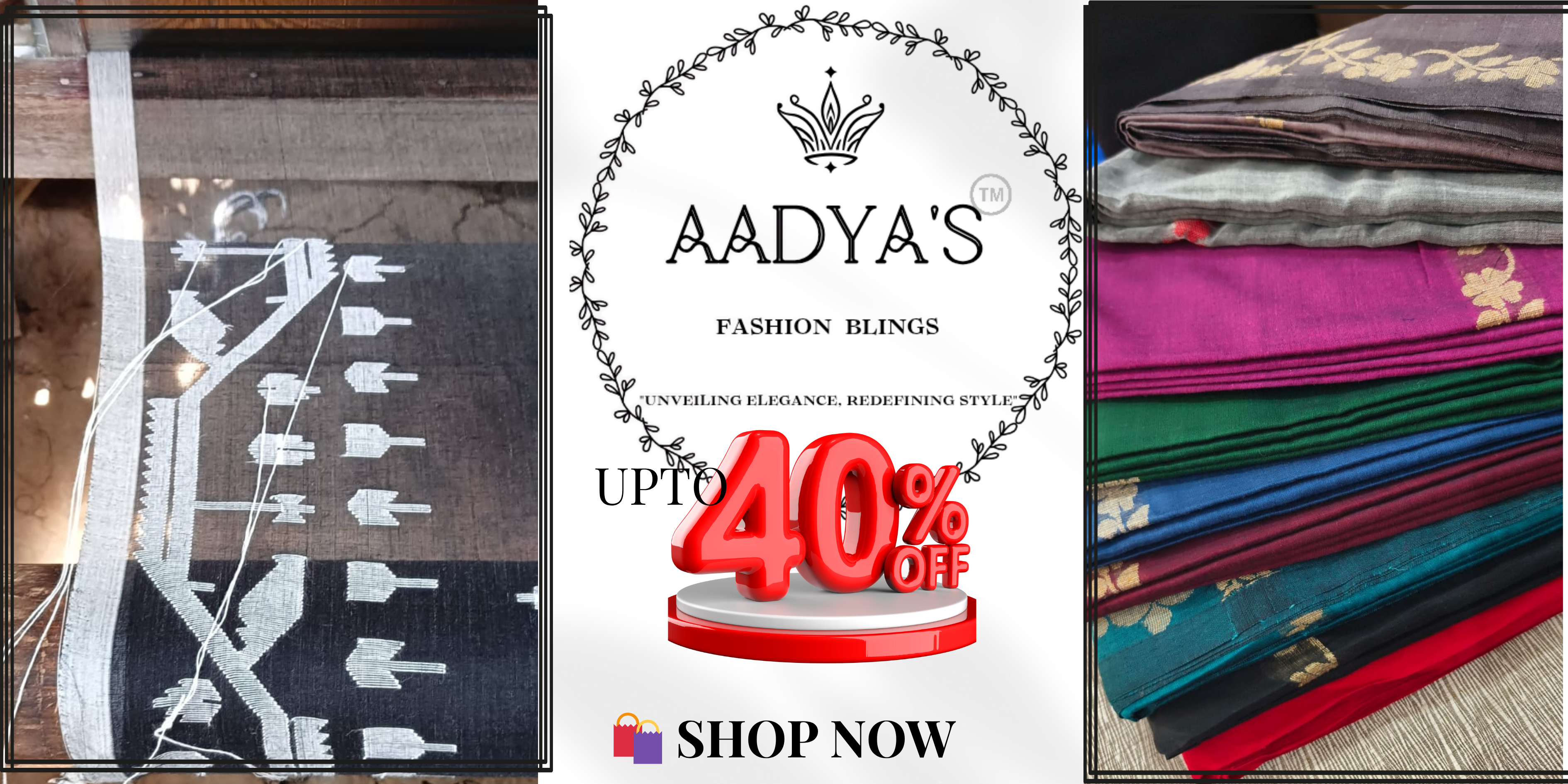 Experience the elegance of authentic handloom sarees where, every thread carries tradition, from Skilled looms of India to your wardrobe.Aadya's Fashion Blings curates soulful heritage and timeless style for the modern woman.